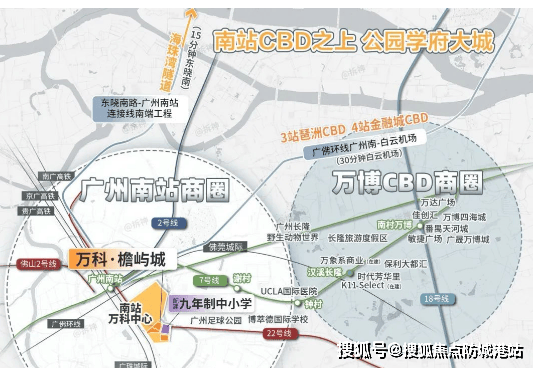 双地铁交汇:项目距地铁2号线/7号线广州南站站仅800米,30分钟直达珠江新城、琶洲CBD。