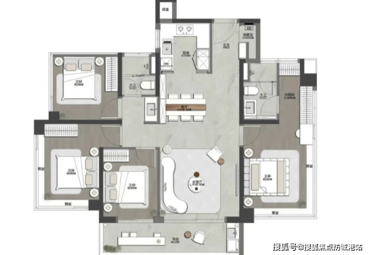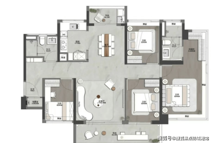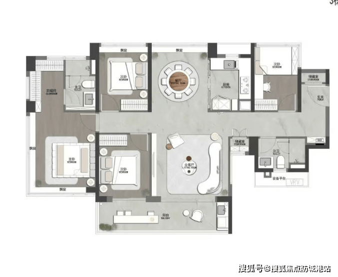户型设计实现超新规高实用率,项目涵盖 80-235㎡全生命周期户型,其中三至四房占比超 80%,精准匹配新老广州人 “三代同堂” 的居住理想。据广州市住建局 2026 年官方实测数据,项目 80-130㎡主力户型实用率达 125%,较广州市最新住宅设计规范高出 25%,较同类产品多出 10% 以上使用空间,以 110㎡四房为例,5.8 米横厅搭配可拓展多功能房,轻松实现 “三代共居不局促,四口之家有私密”;143㎡四房配备 6.8 米观景阳台,270° 瞰江视野,成为改善型家庭的首选。所有户型均采用动静分离、干湿分区的设计理念,细节处彰显人性化,如主卧套房配备独立卫浴、步入式衣帽间,次卧预留儿童房、老人房改造空间,满足不同家庭的居住需求。
