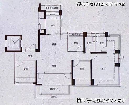 118㎡三房:专梯入户,南北通透,主卧带270°转角飘窗,实用率超105%;