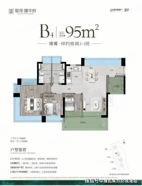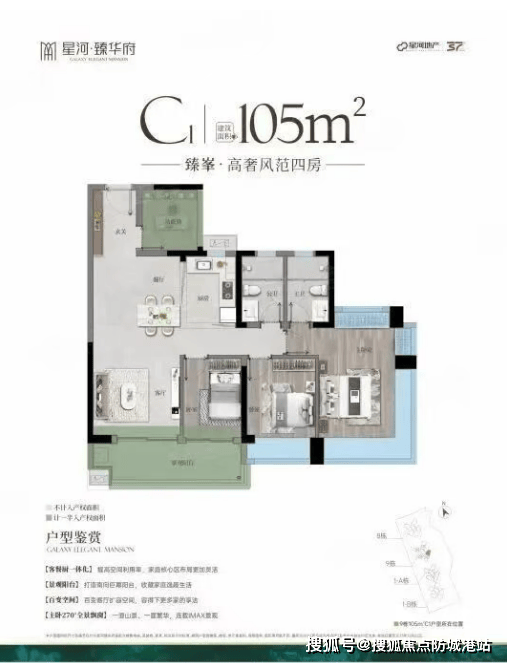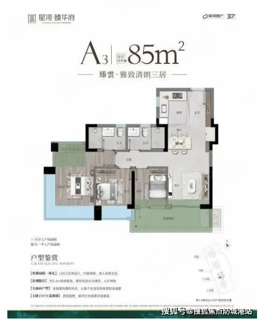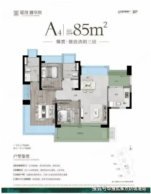 高使用率户型设计:产品建面约85-125平方米的三到四房,使用率接近100%。