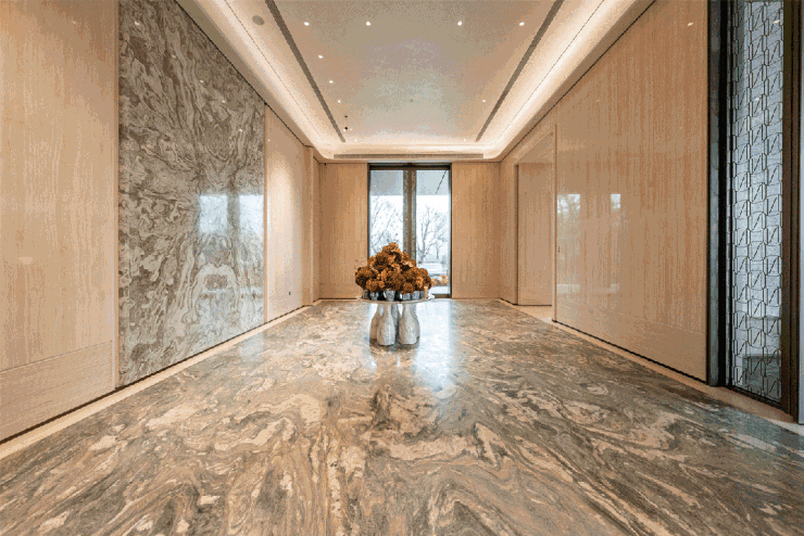 从门楼到园林,从大堂到地下空间,南沙壹号用全球甄选的珍稀石材、大师名作和艺术品,把回家的路走成了一部沉浸式大片。