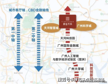 振业天成坐落于广州第三发展中轴线 “科技创新轴”,占据天河智慧城和黄埔科学城双城交汇的黄金地段。这条科技创新中轴以琶洲为核心,北起中新广州知识城,南抵广州大学城,汇聚金融总部、人工智能等前沿产业,未来产业成熟时,承载的 GDP 预计超 1 万亿元,将扛起广州经济的半壁江山。