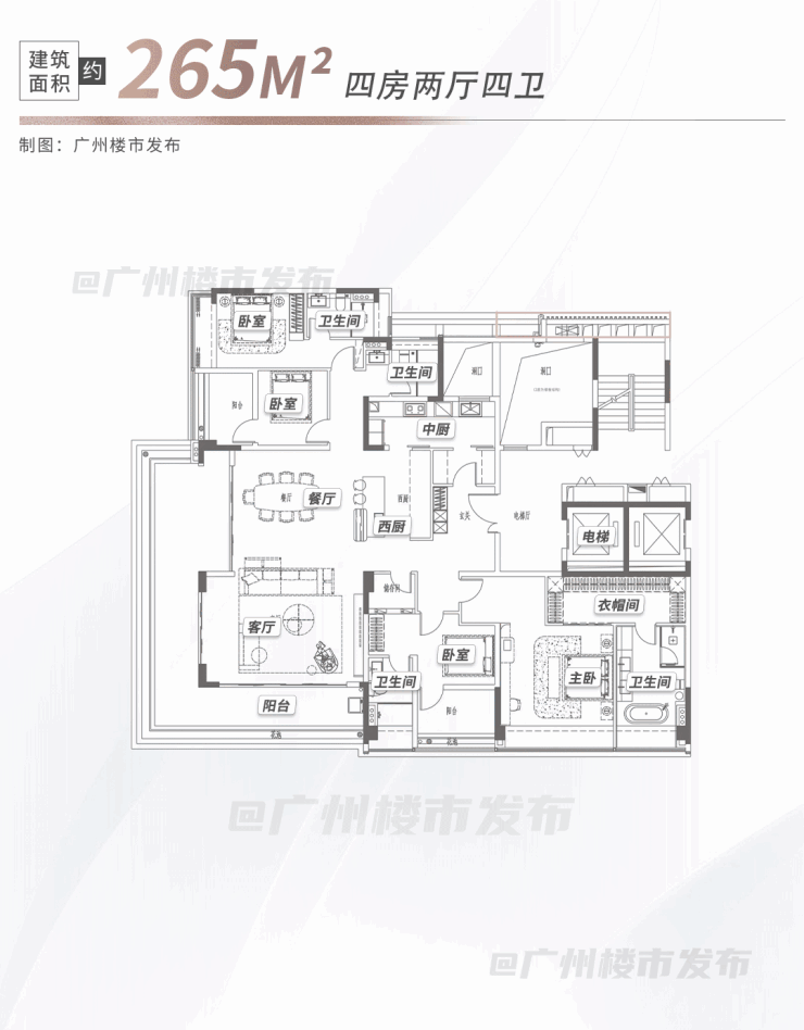 户型设计很出彩。125 - 142㎡一线江景四房,214 - 319㎡大平层,超高使用率。白云首个珠江大平层,4 面宽朝南看江,阳台宽达 2.2 米,高层阳台长度 8 - 9 米,大平层长度 17 - 24 米,5.7 米宽厅尺度市场少见。这种设计不仅空间利用合理,还保证了居住的舒适度和江景视野,不管是刚需还是改善型购房者,都能找到心仪的户型。