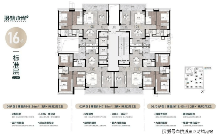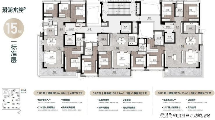 项目主推建筑面积约113㎡至203㎡的三至四房产品,布局科学、动静分区合理,兼顾通风采光与私密性。户型设计采用全南向布局,配合超宽景观阳台,让业主无论身处客厅或卧室,都能一览无遗地欣赏滨海盛景。主卧采用套房式设计,独立卫浴与衣帽空间兼具舒适与尊贵感。