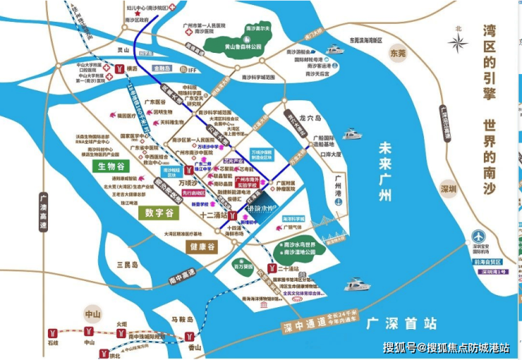 珺筑水岸位于南沙万顷沙核心区,拥有极为优越的交通区位优势。项目距离深中通道万顷沙支线出入口仅约2公里,可直通深圳前海,是当前南沙区域最靠近深中通道的住宅项目之一,真正意义上实现“跨城一桥直达”。随着深中通道即将全线通车,南沙与深圳的通勤时间将缩短至半小时内,这对湾区双城生活的精英人群具有巨大吸引力。