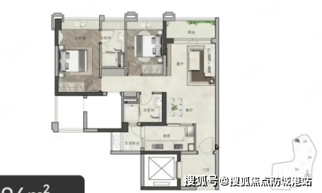 96㎡2+1房:增加了空间灵活性,适合需要更多私人空间的家庭。