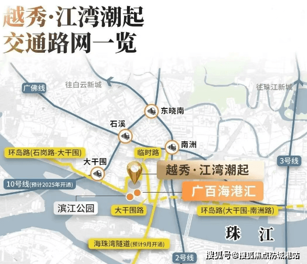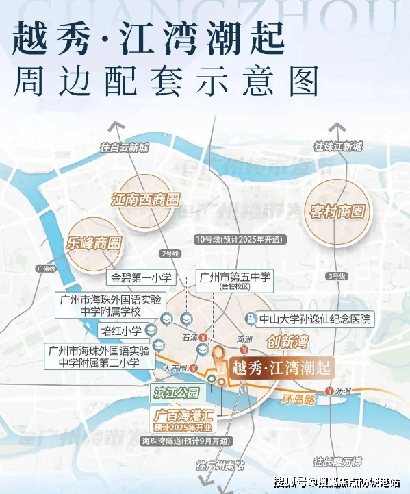 A:项目自带3.4万平方米商业Mall,计划引入奢侈品旗舰店、五星级酒店、商务办公等业态;周边3公里聚集万达广场、合生广场、海珠新都荟三大商业综合体,广百海港城(总投资40.7亿元)预计2025年底开业,家门口解决吃喝玩乐需求。