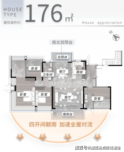 2. 176㎡四房两厅两卫:全生命周期设计,适配多代同堂