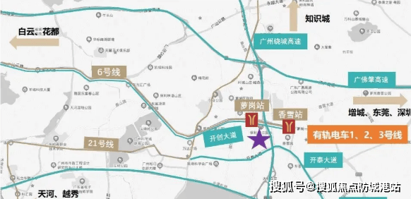 便捷的交通网络:紧邻地铁6号线萝岗站,未来21号线也将贯穿项目周边,双地铁出行更加方便快捷。