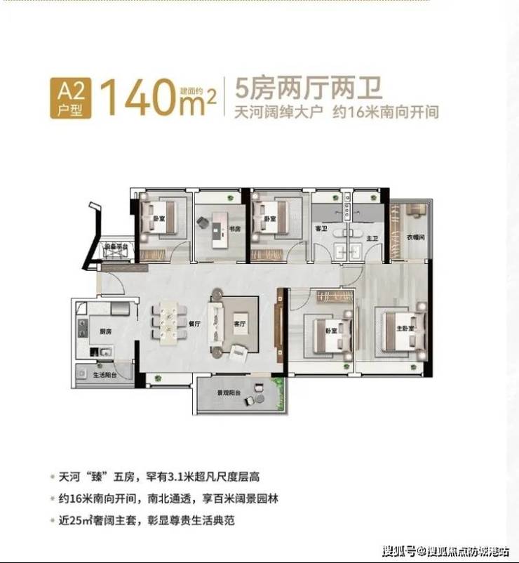 143㎡五房两厅三卫:片区稀缺大平层,双阳台+中西双厨,层高3.1米,空间感媲美豪宅。