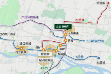 项目地处天河智慧城南翼——智谷板块核心,虽享山林静谧,却未远离城市动脉。自驾方面,悦景路、大观路、华快等主干道可快速通达珠江新城、金融城、琶洲等CBD区域,并便捷连接白云机场与广州南站。轨道交通方面,距地铁21号线智慧城站约1.5公里,4号线黄村站约2公里;规划中的地铁19号线(预计2025年开通)设大观南站,将进一步提升区域通勤效率。此外,广佛东环城际与穗莞深城际(均在建)将在附近设站,未来可实现湾区主要枢纽的快速接驳。