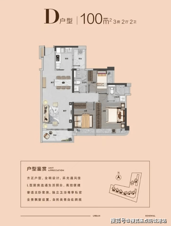 所有户型设计均注重采光通风,提供舒适的居住体验。小区整体布局为L型,前后无遮挡,采光效果良好。