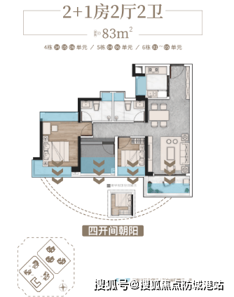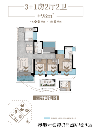 山海合悦在户型设计上独具匠心,所有户型采用南沙难得的 “四面宽” 设计,确保主功能区朝阳,最大化引入阳光与清风。建面约 98㎡的 3+1 房 2 厅 2 卫户型,客餐阳一体,拥有约 12 米四面宽向阳开间,约 3.6 米餐厅与客厅相连,直连阳台且为东南朝向,通风采光俱佳,低处可赏园林河景,高处能览山海风光;二合一儿童房设计灵活,可根据需求改造,主卧套房南北通透,拓展 L 型飘台,南向最大约 270° 观景。建面约 83㎡的 2+1 房 2 厅 2 卫户型,厨房宽敞且带窗,烹饪便捷又健康;客餐阳采用南向大竖厅设计,功能分区合理;多功能空间可灵活打造为儿童房、书房等,主卧套房同样配备最大约 270° 观景飘窗,尽享海景与园景。