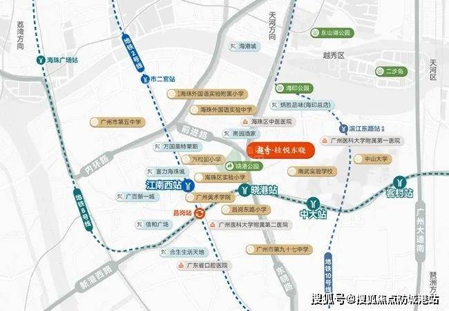 越秀·桂悦东晓地处海珠老城核心区域,紧邻晓港公园及地铁站,生活便利性极佳。项目距离地铁8号线晓港站仅约600米,一站换乘2号线昌岗站,可以直达琶洲、客村及珠江新城。步行约500米即可到达2号线东晓南站,无缝接驳广佛线。