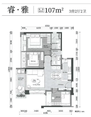 105㎡三房两厅两卫:采用LDK一体设计,半开放式厨房,配备4.6米大阳台,注重空间利用和家庭互动。