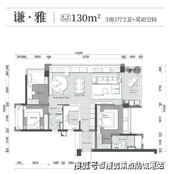 128㎡三房两厅两卫:布局合理,功能分区明确,适合追求舒适生活的家庭。
