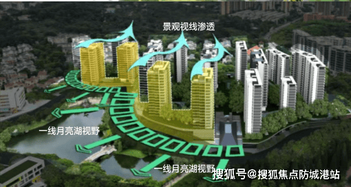 低密度设计:45-52米的小高层建筑,按“前低后高”的高度控制,形成朝向湖区梯级跌落的设计,大地块西北向望湖景,小地块西向往湖景。