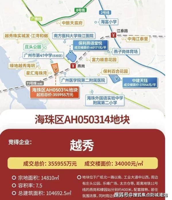 越秀广纸 314 地块项目,于 2025 年 9 月 19 日由越秀以楼面价 3.4 万 /㎡、总价 35.6 亿元收入囊中。虽地块体量不大,但凭借诸多优势脱颖而出。项目位于发展成熟的海珠广纸板块,新规后户型使用率可达 120%,背靠 56 万方成熟大盘越秀・星汇海珠湾,配套充足。规划 4 栋楼,约 1040 户,建面约 88 - 120㎡三至四房,主打刚改。双地铁上盖,教育资源丰富,生活配套完善,自带八大主题全龄段泛会所,融入广府元素。独特的户型设计,赠送空间多,性价比高,是追求品质与实用的购房者的理想之选。