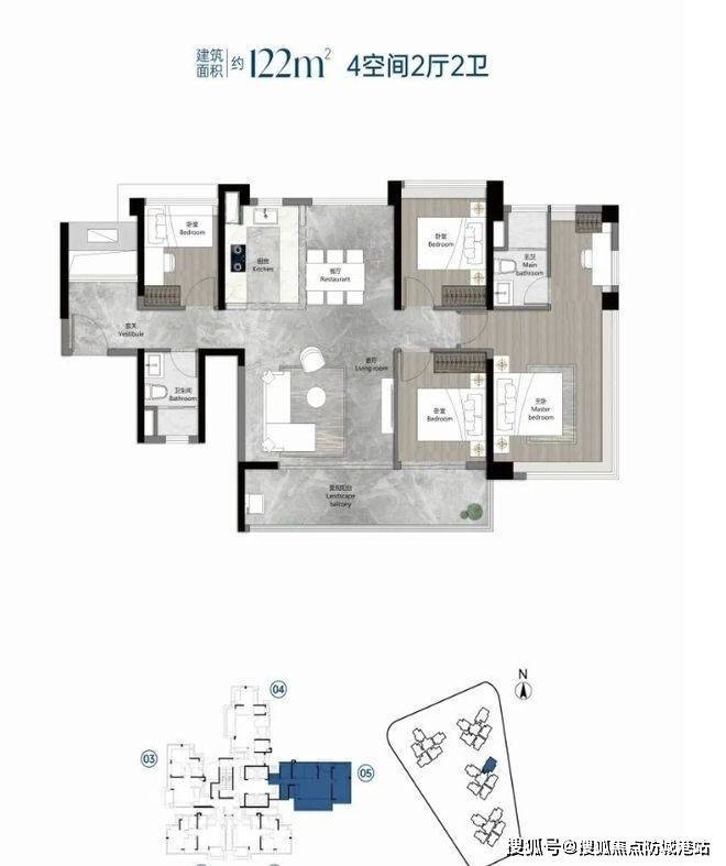 项目规划 4 栋住宅,大概率采用蝶式布局。户型为建面约 88 - 120㎡三至四房,新规后的户型设计独具匠心,阳台占比可达到套内面积的 20%,在海珠西板块使用率领先。极高的赠送率让空间尺度感十足,88 方三房相当于旧规 110 方,108 方、120 方四房约等于旧规 120 - 140 方户型。88 方户型做到 3 房 2 卫,四开间朝南,入户花园、飘窗等赠送空间合理利用,提升居住舒适度。108㎡横厅户型,阳台开间 5.95 米,公区气派。122㎡户型客餐厅南北对流,形成 LDKB 一体化 + 超大生活剧场,主卧 270° 飘窗,空间布局合理。各户型赠送空间达到极致,是地铁 11 号线上首个有望达到 120% 使用率的项目。