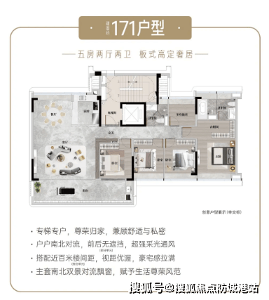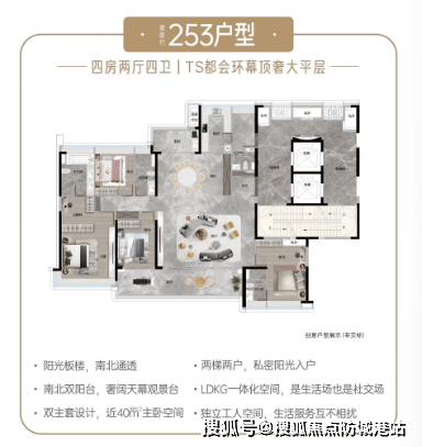 户型设计:140-253㎡板式大平层,专梯入户 + 全明通透
