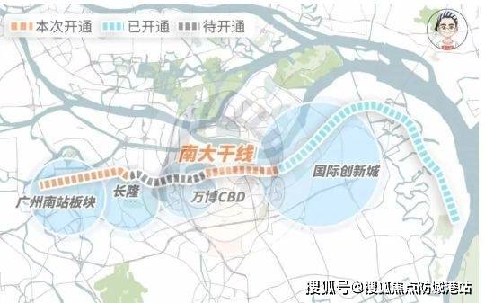 干线优势:南大干线预计 2023 年全线贯通,双向 6 - 8 车道,不设红绿灯,限速 80km/h,并接驳新化快速,可快速畅达广州主城区。10 分钟可达国际创新城,15 分钟抵达万博 CBD 商圈,25 分钟前往广州南站商业区。