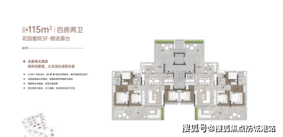 三层约115㎡户型,配备南北双露台,总面积超50㎡,南向露台30㎡,拥有约11.7米采光面,可一面望江一面赏园,清晨沐浴阳光,傍晚俯瞰江景,享受惬意时光。四层约124㎡户型,采用复式设计,赠送顶层天台,使用率242%,下层侧花园设计增添自然气息,顶层天台可打造星空露台、私家菜园,解锁多元生活方式。