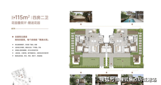 首层约115㎡户型,赠送双花园面积高达170㎡,使用率达262%,内部采用LDKG一体化设计,实现南向四面宽,采光通风极佳,花园空间可打造私家庭院、绿植景观区,满足家庭休闲与社交需求。二层约113㎡户型,全赠送80㎡超大花园与多功能空间,露台面宽达11米,使用率235%,可根据需求改造为儿童游乐区、茶室或健身区,拓展生活场景。