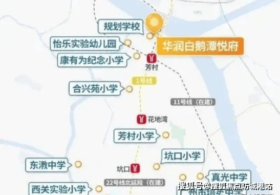 白鹅潭悦府位处广州荔湾芳村区域 与广州传统核心商圈接壤 项目最大优势在于紧邻地铁枢纽 距离芳村地铁站仅400米 实现真正意义上的地铁上盖生活 未来可接驳11号线 22号线 28号线 形成三轨交汇网络 极大提升日常出行效率 不论是通达天河 番禺 还是佛山方向 都具备极强的通勤便捷性 TOD理念的植入不但提升项目交通价值 也进一步带动区域商业发展和人口集聚 社区周边公交系统发达 与市区各大核心片区保持紧密联系 是白鹅潭地区轨道交通资源最密集的项目之一