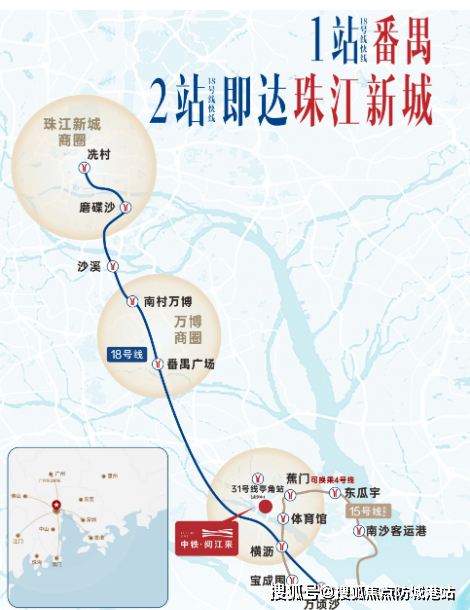 中铁·阅江来坐落在南沙区府与灵山岛CBD的黄金交汇处,属于粤港澳大湾区的核心地带。项目周边交通网络发达,靠近万洲大桥、进港大道和广澳高速,方便前往广州市区及珠三角其他城市。虽然距离最近的地铁站有一定距离,但随着未来规划中的地铁15号线站点的建成,公共交通将更加便捷。
