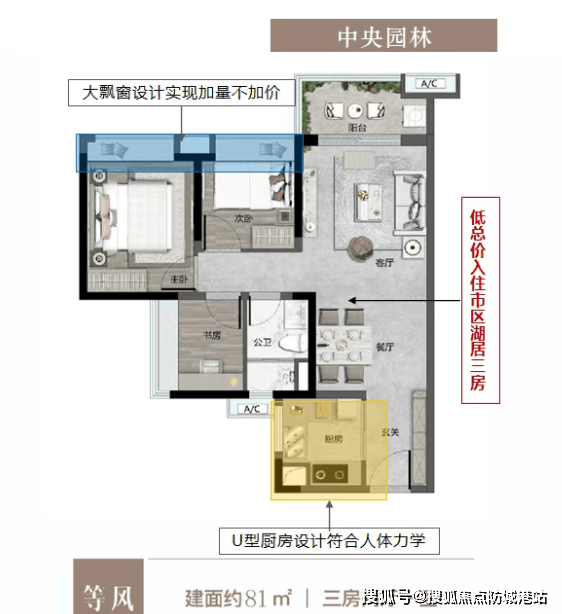 约80㎡三房二厅一卫:低总价三房户型,轻松上车湖居科技社区。