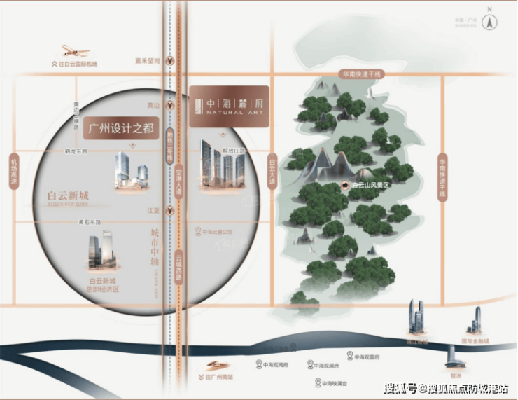 中海麓府正位于设计之都一期东侧,紧邻空港大道黄金中轴,南向直面白云山4.2万亩生态森林,无任何高层建筑遮挡,实现“城市繁华”与“自然静谧”的完美共生。这种“产业+生态+地段”三位一体的稀缺组合,在广州主城区已近乎绝版。
