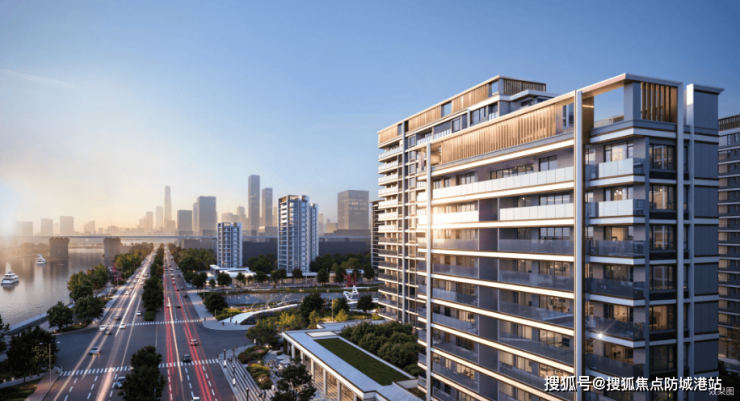 项目采用全景玻璃幕墙立面设计,浅灰LOW-E玻璃窗地比高达0.4,媲美豪宅标准。公建化立面设计,营造出现代滨海美学的独特魅力。高配公区以星级酒店式落客区打造归家仪式,彰显尊崇身份与不凡品味。