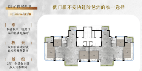 保利天奕推出的户型涵盖了约122m²跃升低密4房、约139m²城际瞰景4房及约187m²央楼王4房,均为南北对流双阳台四房设计,专梯入户,确保了居住的私密性和舒适性。