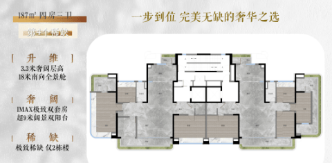 建面约187m²央楼王4房:顶级配置,尊享豪华生活。