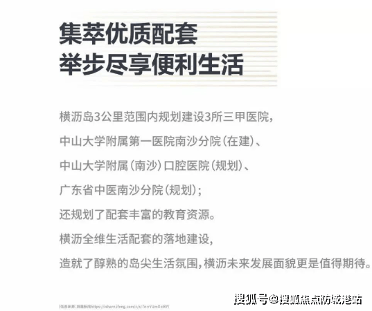 医疗设施:3公里范围内规划有中山大学附属第一医院南沙分院、中山大学附属(南沙)口腔医院、广东省中医院南沙分院等三甲医院