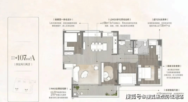 二、新规产品·超高使用率:全系户型超130%得房率,重塑空间价值