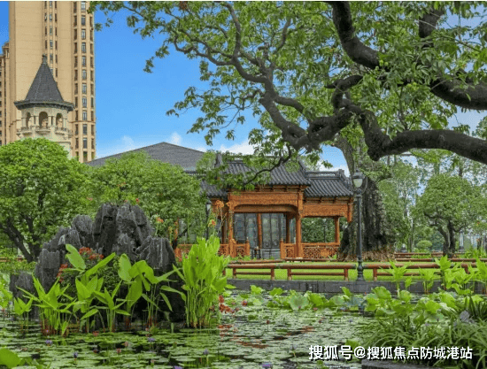 社区内部打造了极致精美的中式园林,江园合一再现唐诗意境,4.6万方水体与600多棵参天大树相映成趣,荷塘风雅,绿意盎然。园林分为晨露园与夕露园两大主题园区,晨露园汇聚八角亭、珍木繁花及奇石,晨时可赏曙光映江;夕露园取陶渊明诗句意境,建筑、绿植、江景层层递进,人与园相融,与江无界。