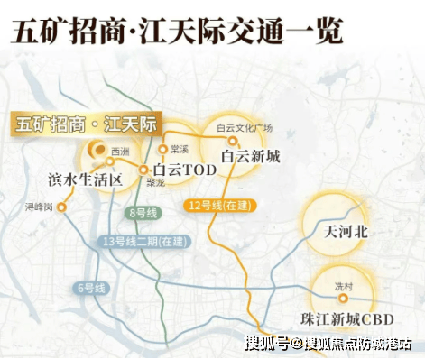 五矿招商江天际位于白云区广海路的白云槎头站上盖,是一个TOD项目,具有得天独厚的交通优势。项目距离13号线二期、12号线以及规划中的佛山8号线交汇的槎头站仅约300米,可实现四站直达荔湾,六站到纪念堂,并快速到达珠江新城等核心区域。白云站城市枢纽距离项目约2.7公里,该枢纽建成后将成为亚洲最大的TOD大型综合交通枢纽之一,包含高铁、普铁、城际、地铁等多种交通方式,极大提升了项目的出行便利性。此外,随着白云二线和棠槎路等路网的打通,项目所在片区将与白云站TOD、白云新城实现连片发展。