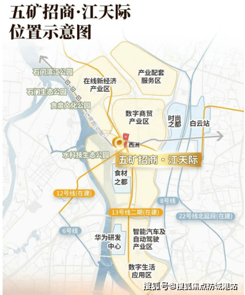 五矿招商江天际所在的湾区新岸(罗冲围)片区未来有望成为白云区乃至广州市社会经济发展的热点区域,官方甚至宣传这里将打造成“第二个珠江新城”。华为百亿智能汽车产业已落地距项目3公里处,未来将是华为全国科研人员的研究中心,预计将吸引大量高新人才聚居。此外,项目毗邻珠江,亲江距离仅为40米,是广州所有在售项目中最接近珠江的楼盘,提供了稀缺的江景资源。然而,现状周边的城市面貌较为一般,物流园环绕,环境有待改善,但这也将随着旧改的推进逐步得到解决。
