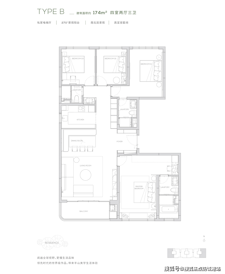 最后不得不提的是,合生缦云在户型设计上的创新与突破。通过南北双园景设计、270度超广角观景视野以及3面开窗的户型布局,确保了良好的采光与通风效果。主套房配有步入式衣帽间和独立电梯厅,充分考虑了业主对私密性和舒适度的要求。这一切的设计理念都是为了实现更高层次的生活品质,让居者感受到前所未有的居住体验。