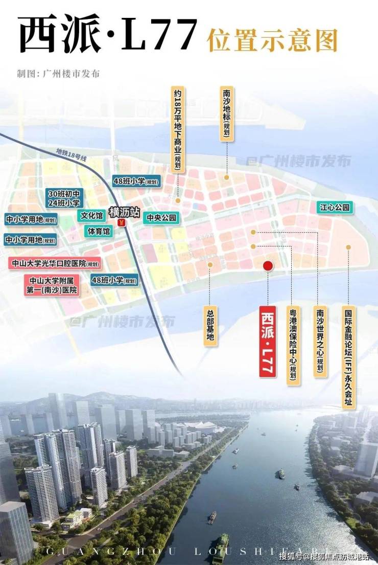 西派·L77位于广州市南沙区横沥岛尖,是国际金融岛上的顶级寓所。项目依托南沙作为大湾区几何中心的独特地理优势和战略地位,结合国际金融论坛(IFF)永久会址的优势,为高净值人群打造了一个纯粹商业大平层社区。