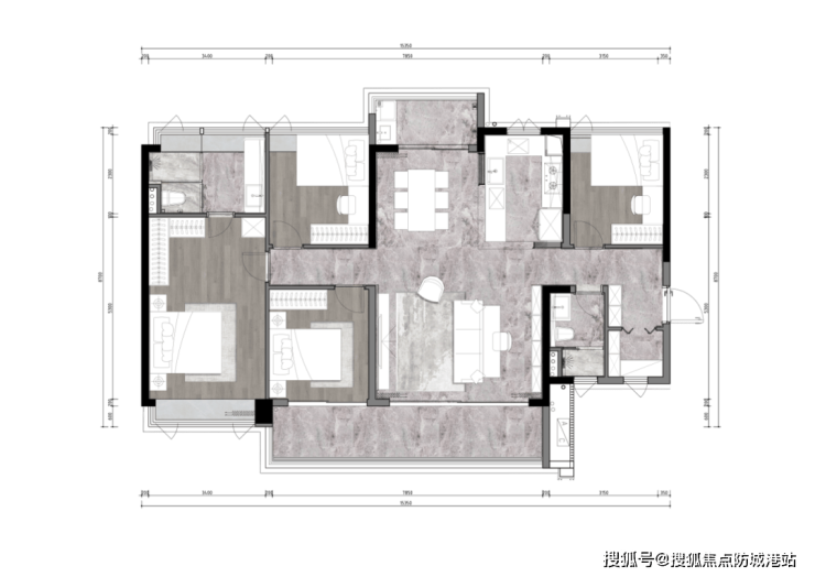 165-186㎡四房:双阳台配置+超大面宽,主卧带独立衣帽间与卫浴。