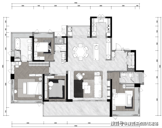 122-141㎡四房:阔尺方厅+行政主卧套房,270°观景视野;