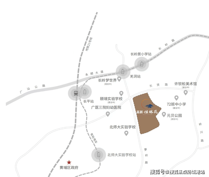 2. **交通畅达**:项目拥有便捷的交通网络,实现了双地铁覆盖,直线距离约800米可达地铁21号线长平站,1站到黄埔区府(水西站),2站到万达广场(苏元站),5站到天河(天河智慧城站),并且在水西站可转7号线,苏元站换乘6号线,通达广州各个区域。此外,步行约400米可达有轨电车1号线羌洞站,连接了永和、长岭居、长平、水西和黄埔政文中心片区,快速接驳广州地铁6号、7号、21号线,为业主提供了更多的出行选择。自驾方面,项目周边有香雪大道、广汕公路、开创大道、开萝大道等多个主干道环绕,3公里即可上广州绕城高速,37公里便可驶达白云国际机场,无论是日常通勤还是外出旅行都十分方便。