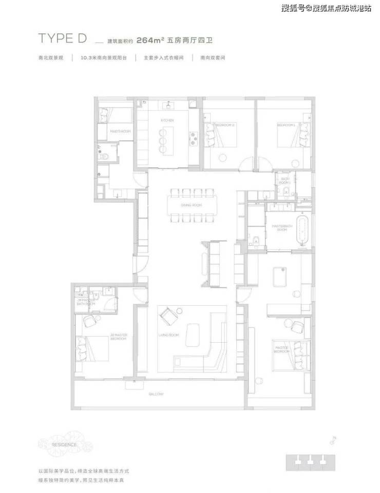 264为五房两厅四卫产品,更细腻的产品设计,超奢华四件套南向主卧,标准南向次主卧, 6.6米巨型方厅,纵向超长LDK一体化空间,专属家政保姆空间,超大容量收纳空间,令居住的尊贵从每处品质细节里流露而出,创造独一无二的奢享体验。
