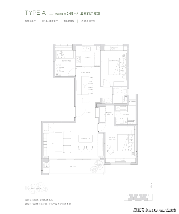独享私家电梯厅-约7.1m²森幕宽厅-LDKB全明户型