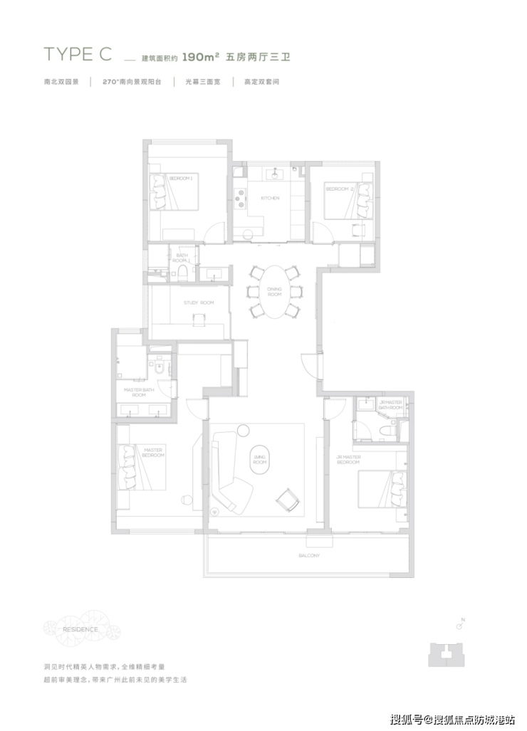 项目产品涵盖145-320㎡三至五房,目前在售户型:145㎡三居、174㎡四居、190m²五居和260m²五居,是天河市中心难得的半山大宅。