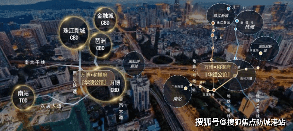 广州城市中轴线,北起燕岭公园,南至番禺广场,全长18公里,串联了天河CBD、琶洲会展区、万博商务区三大核心板块,是广州“向东向南”发展的战略轴线。万博和樾府华颂公馆位于中轴南段,距离珠江新城仅12公里,驾车约25分钟可达,是广州中轴线上唯一在售的现楼项目。项目周边汇聚了番禺万达广场、奥园国际中心、华新汇等九大商业综合体,未来还将建设全国最大地下商业空间(约180万平方米),涵盖休闲、娱乐、购物等全业态,打造24小时不夜城。