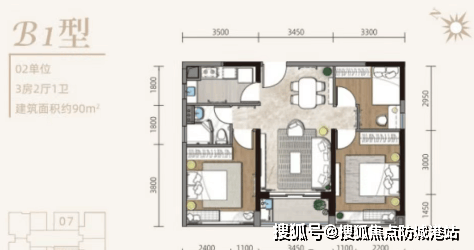 90㎡3房2卫:家庭成长型,三代同堂无忧