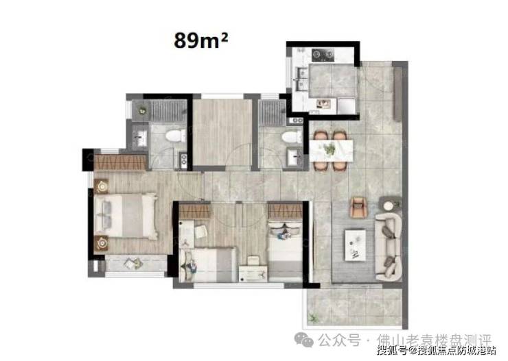 泰丰千语庭在产品设计上最大的亮点在于其对空间利用率的极致追求。项目主力户型包括建面约83平方米的三房两厅两卫、89平方米的四房两厅两卫以及少量108平方米的四房户型。其中,89平方米四房双卫户型更是获得了国家专利认证,这在市场上极为罕见。传统观念中,89平方米通常只能做到三房,但泰丰千语庭通过巧妙的设计,成功实现了四房布局,且每个房间的功能分区明确,动线流畅合理。